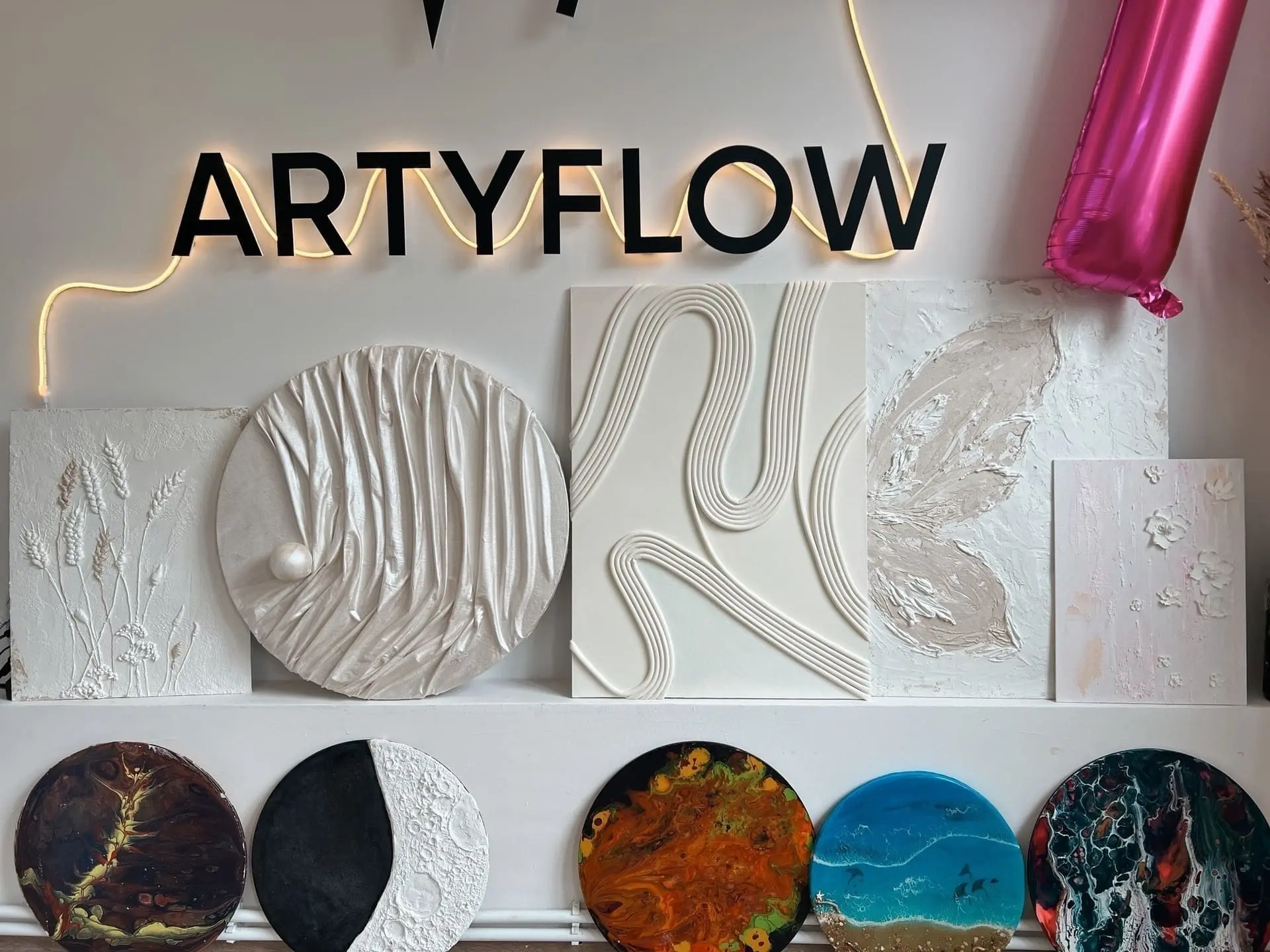 • Яркие акриловые краски, кисти, мольберты
